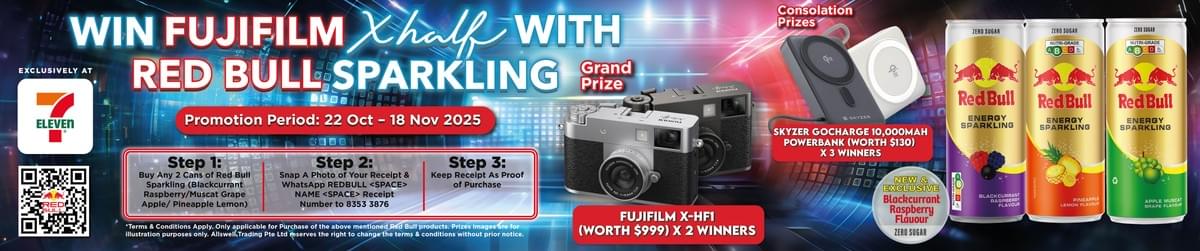 The Red Bull Singapore āWIN FUJIFILM Xhalf WITH RED BULL SPARKLINGā Consumer Contest is organised by Allswell Trading Pte Ltd, 41, Sunset Way, #02-05 Clementi Arcade, Singapore 597071 (āThe Organiserā).